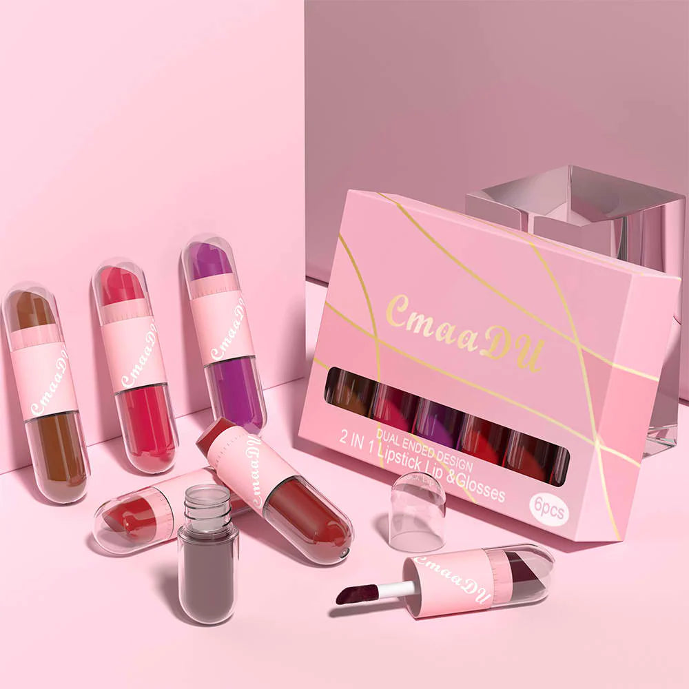 6pc/Box 2 in 1 Longlasting, non stick cup, velvet smooth matte lipstick set