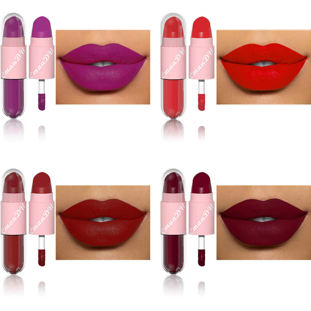 Introducing our 6pcs 2 in 1 Long-Lasting Matte Lipstick Set – a collection designed to empower your beauty routine with vibrant, velvety shades that stay put all day. Each lipstick in this set is carefully crafted to provide a luxurious matte finish while delivering a burst of intense color that complements every skin tone.