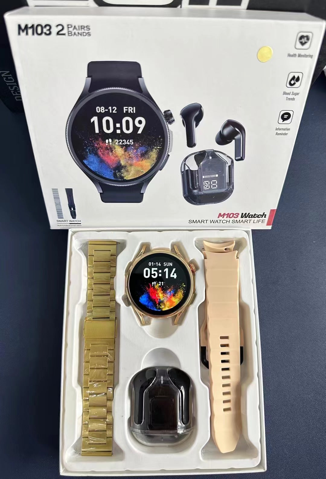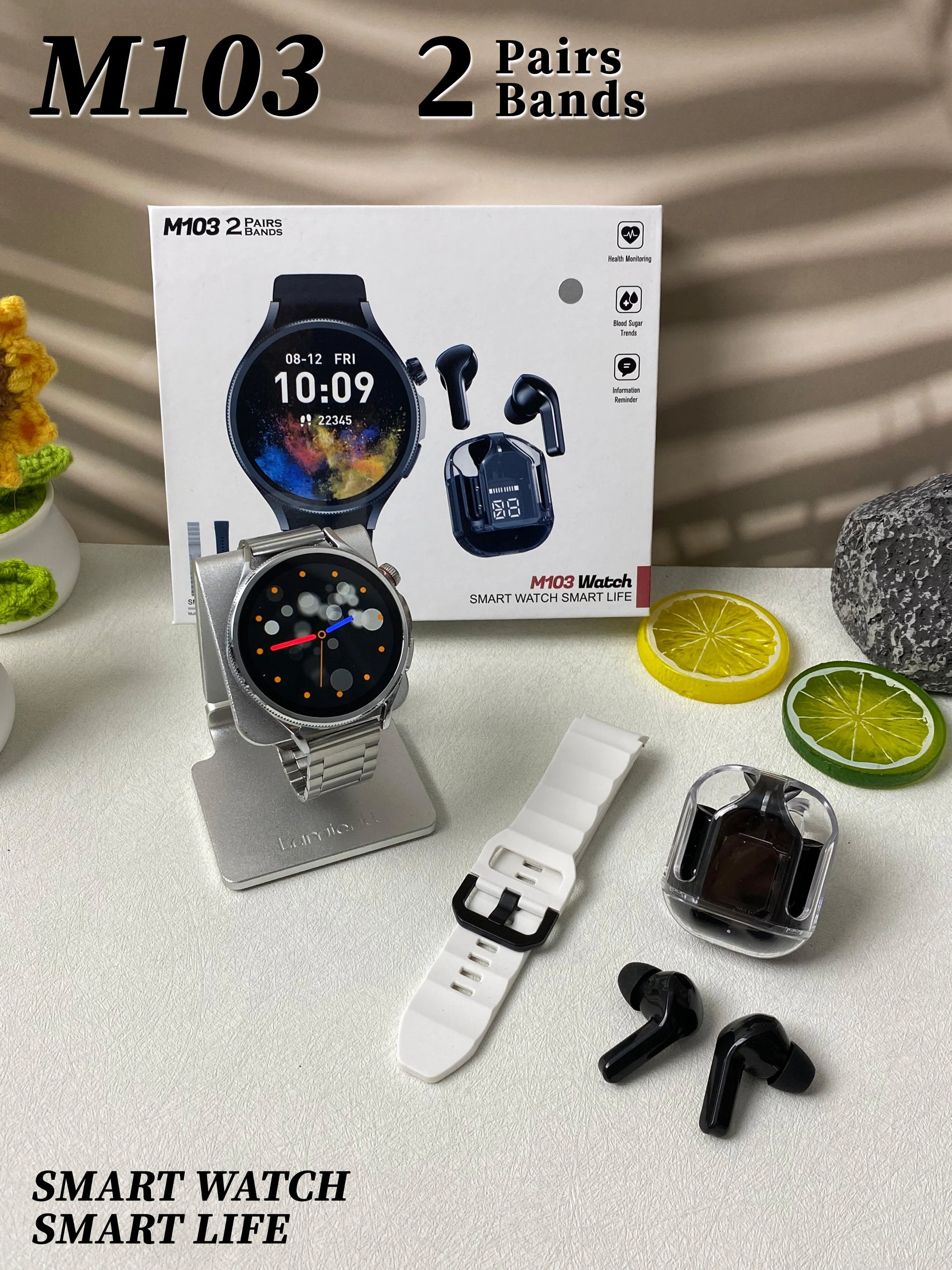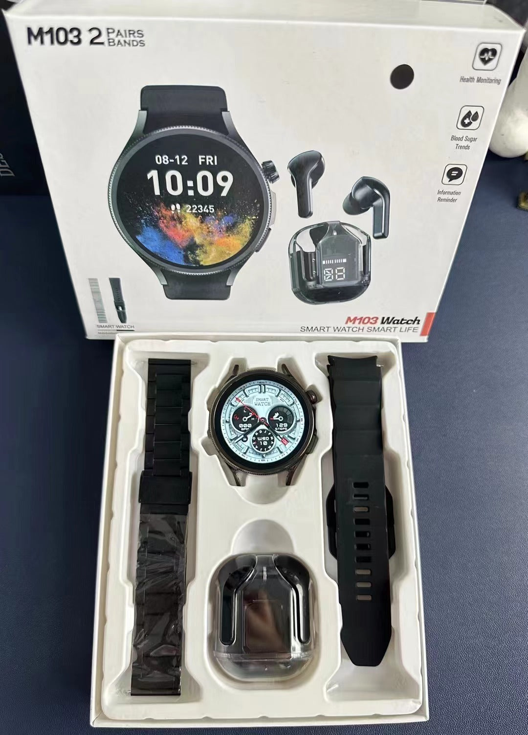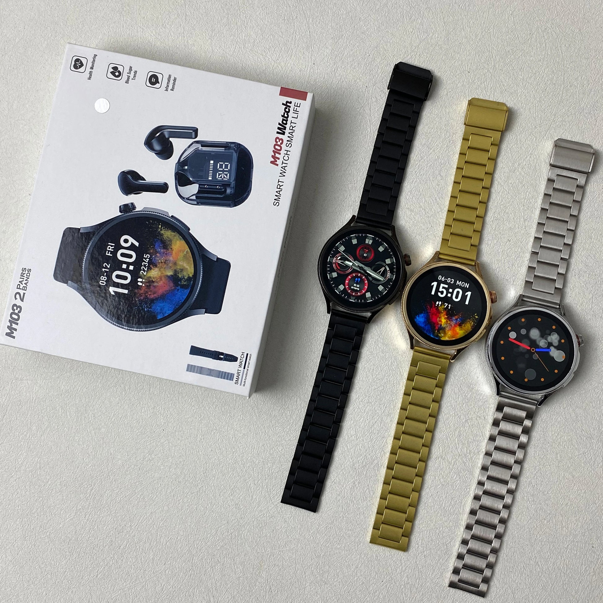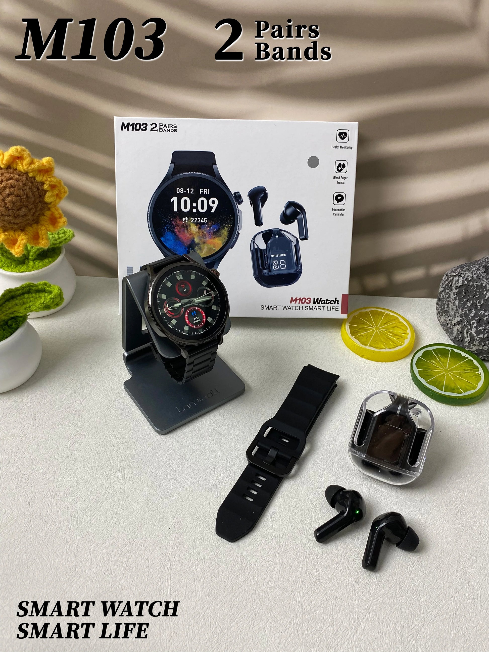 High Quality M103 Smart watch with 2 pairs of Straps and Free Earbuds